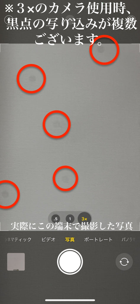 ×3以上接写してのカメラ使用時に黒点の写り込みが複数箇所ございます。